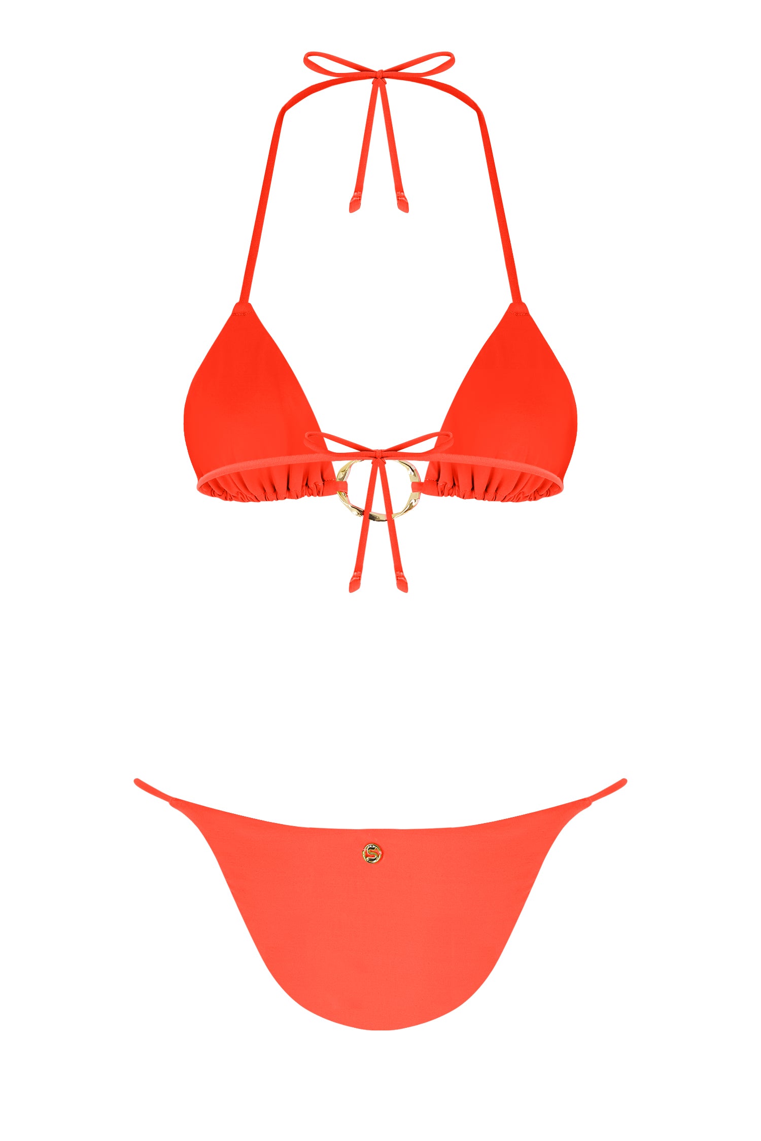 Classic with a twist - The Suki Top is a classic triangle bikini top featuring vintage gold ring hardware at the front and adjustable neck and back ties.