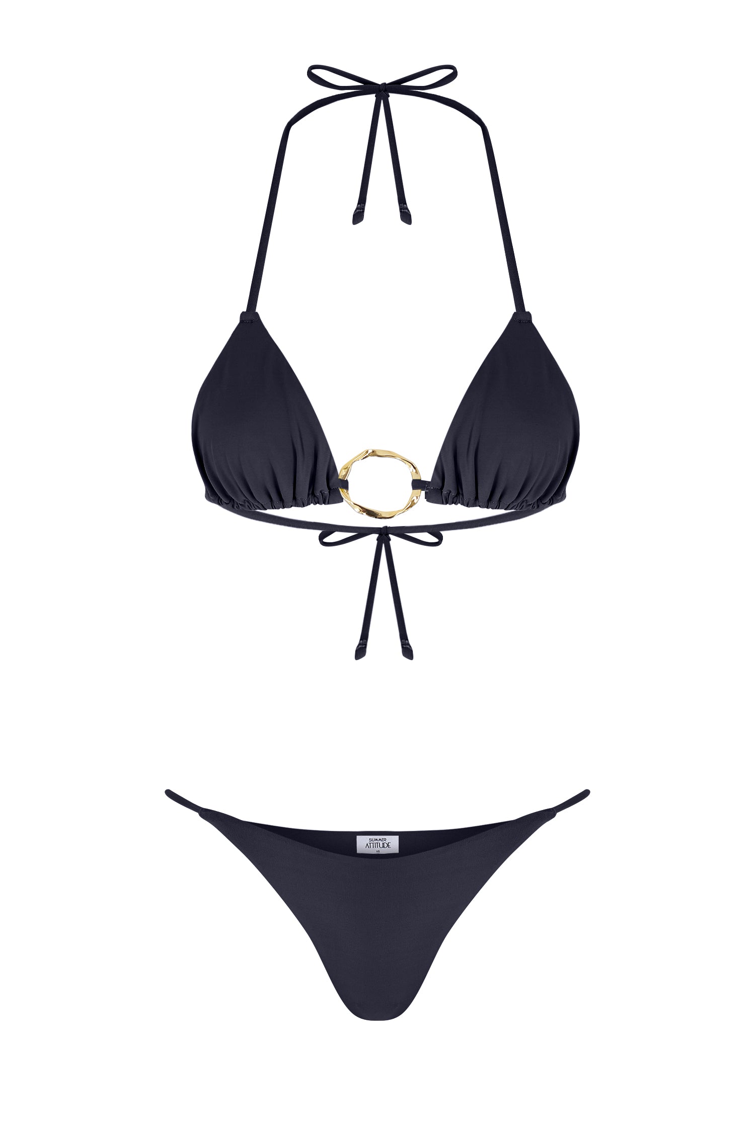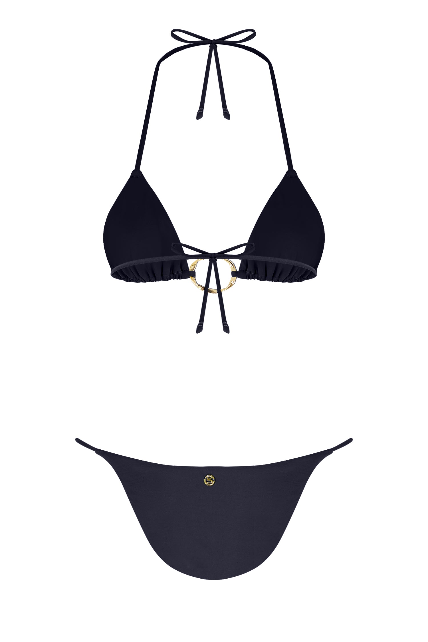 Classic with a twist - The Suki Top is a classic triangle bikini top featuring vintage gold ring hardware at the front and adjustable neck and back ties.